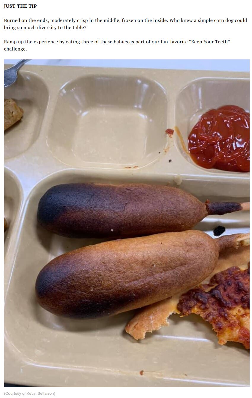 >>529121704>One time, they didn't rinse the food containers well and we had soapy tasting eggs and soup for breakfast. I still laugh about it today.kek.. who knows what else was in there.top left