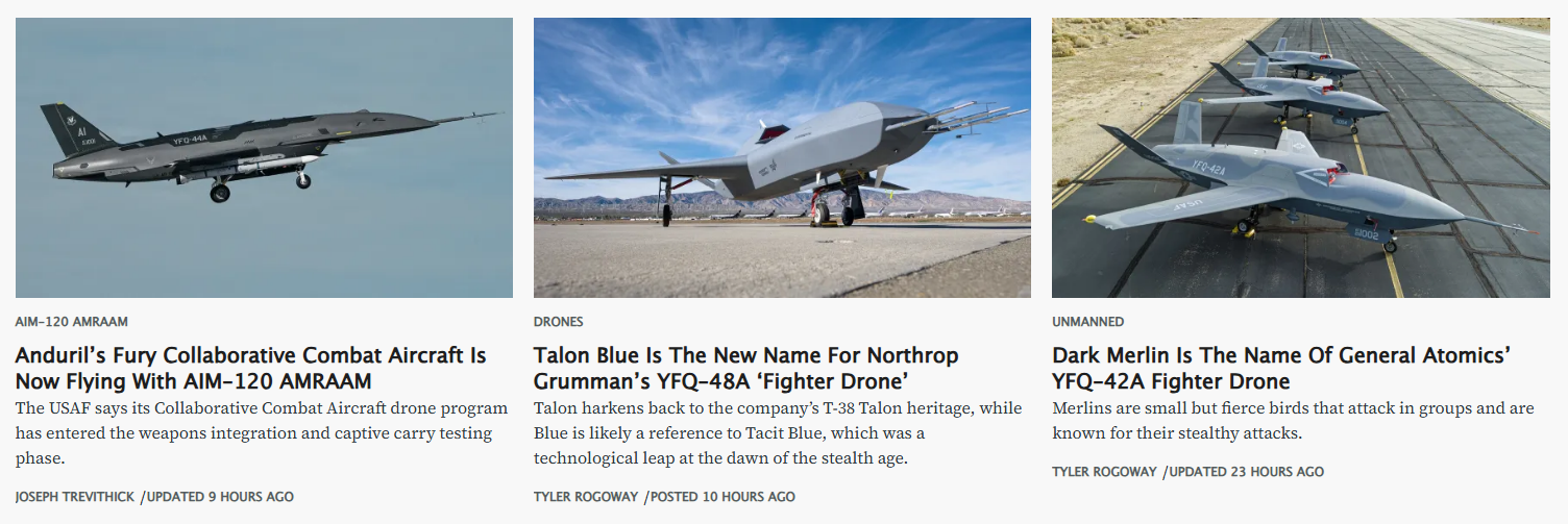 US collaborative combat aircrafts (CCAs) are named Fury, Talon Blue and Dark Merlin. They have ALL FLOWN.
