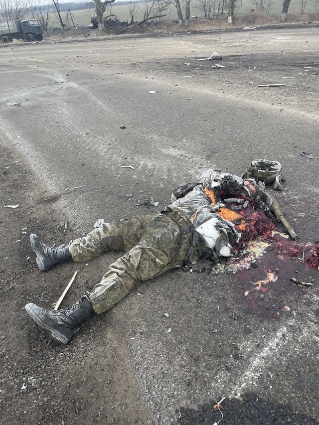 Today is the day the Russians celebrate the massacre of the VDV in Hostomel. They post so many videos of the one way trip they all took, often set to some sort of celebratory music. A death cult pretending to be a gas station pretending to be a country.This is the kind of crap Russians feed themselves:“Hostomel — a heroic deed that went down in history.200 paratroopers spent 24 hours surrounded by the enemy, under constant fire — and accomplished their mission. Superb courage, first-class bravery.We remember and are proud.”