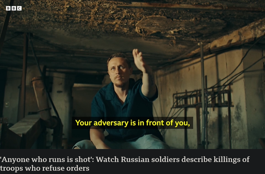 >your adversary is in front of you>but your enemy the commander is behind youhttps://www.bbc.co.uk/news/videos/cx2rql99rwxo