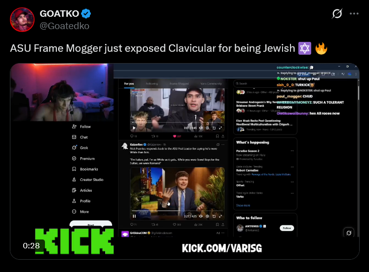 Oh nm you mentioned Sneako as a dysgenic goblin, kek. Clav did say "is he dead? I hope so" so I'm not sure the "he wasn't trying to run him over" defense would work. I don't know, we do live in fucking clown world after all.