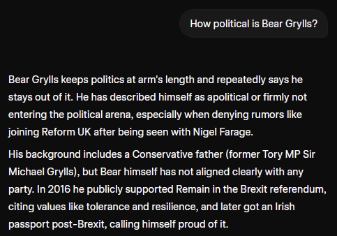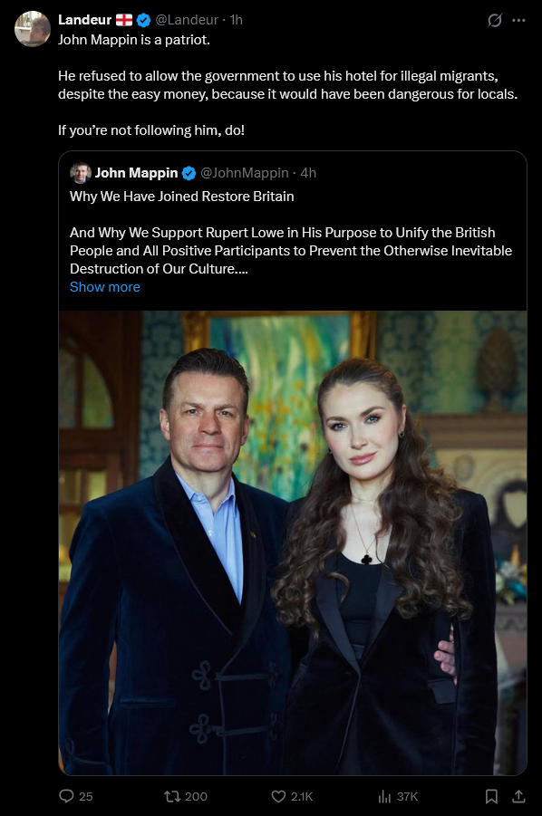 I just think he's got an inflated view of himself, ex army over confidence, he also has not correctly assessed our current reality, if he was able to put his own ego aside he'd get behind Restore and it wouldn't stop him promoting his ideas anyway