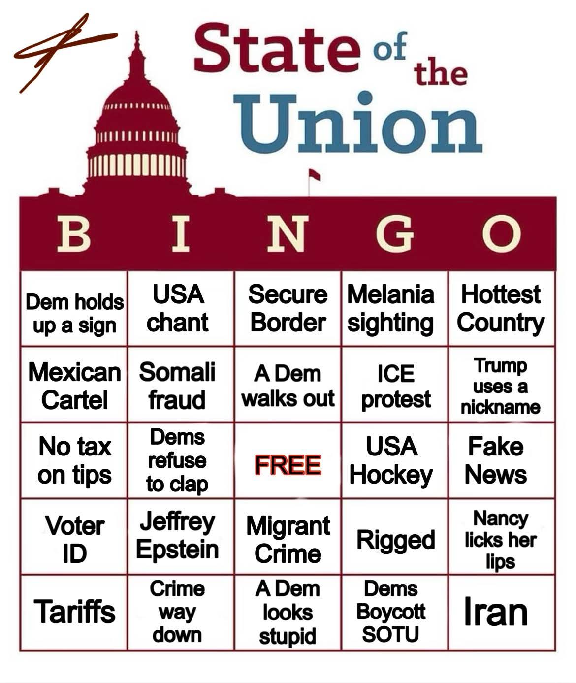 BINGO card for tonight.