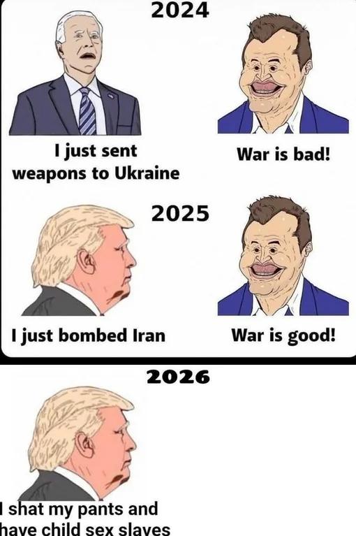 >>529157337>srunpf moves boats>noooo we cant go to war frumphf is warmongering he gonna start dubya dubya three stupid ybrumph>nothing happens>hahaha vergumphf is pussy taco taco taco hahaha hahaBeyond tiresome.
