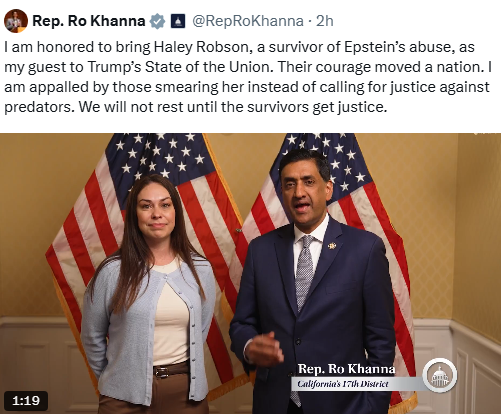 MN Rep. Angie Craig: I would rather stick FORKS IN MY EYES than listen to Trump talk about the state of the union, but this is the people's house, and that is why I feel I have to be there, with the son of Concepcion Macias-Pulido, a Minnesotan who self-deported after being detained by Immigration and Customs Enforcement (ICE) in December, despite having a legal work permit and a pathway to citizenship.