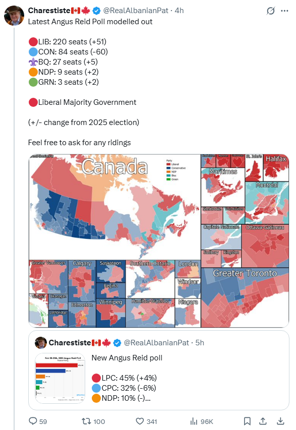 >>529163812Those models have always been worthless. Look at what they were predicting leading to the last election. Still, it's obvious Carney is very popular because he has a more professional vibe than Trudeau. Even if his team is pretty much the same and he isn't fixing shit.