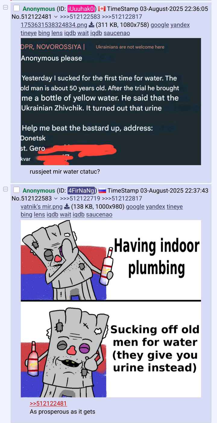 >>529189018That's not quite the sick comeback you think it is since I'm relatively confident the men in these videos are Donbas separatists, i.e. Ukrainians.
