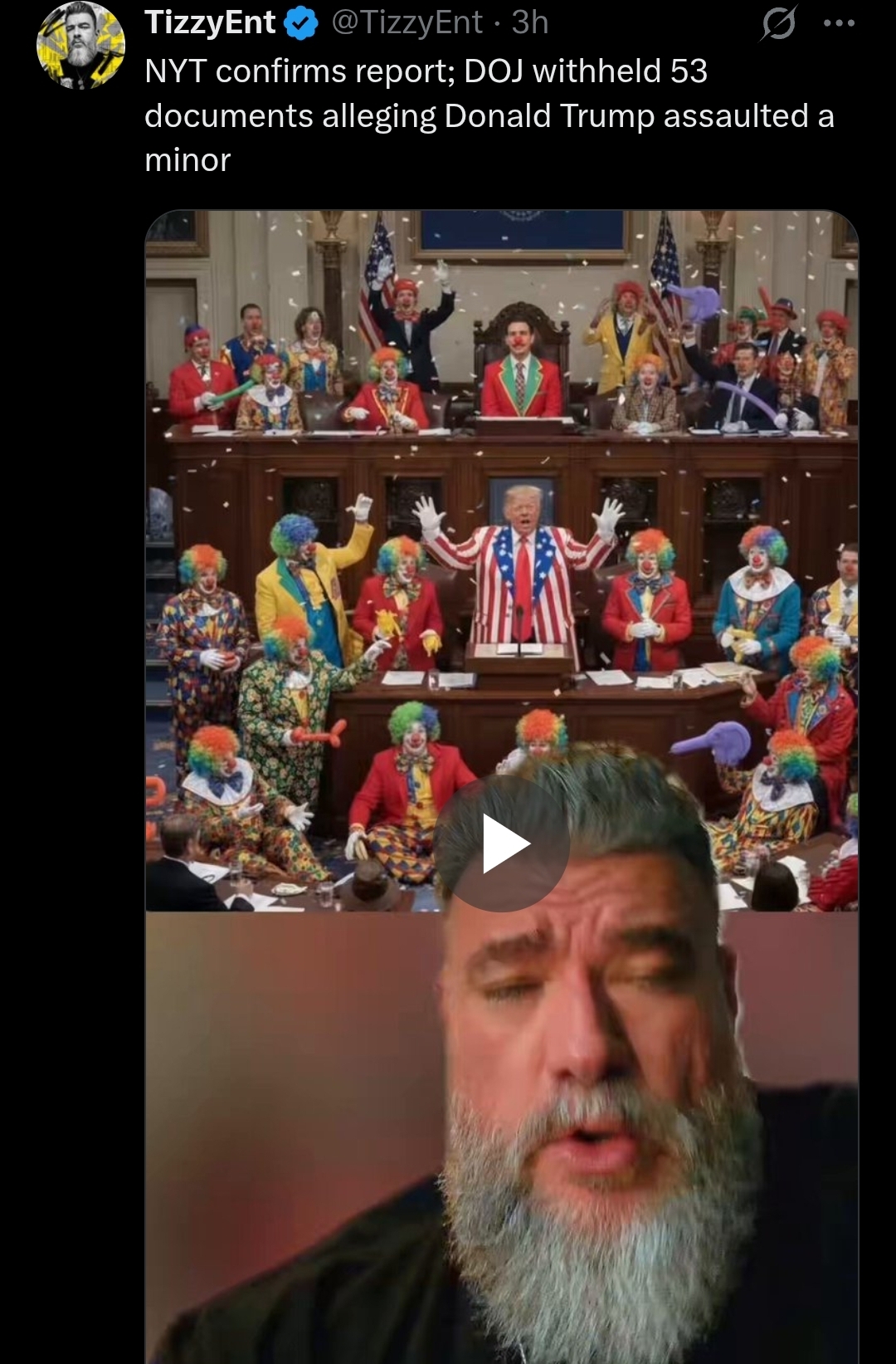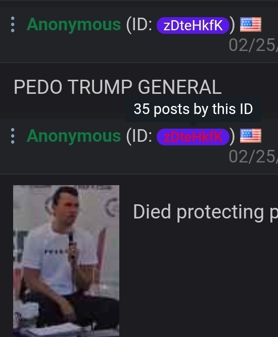 >>529215276>Schizo phone tipper who was rated non-credible due to making multiple complete schizo tips>"Virginia Giuffre totally implicated Drumpf even though she maintained his innocence until the day she died in a tragic weight-lifting accident">AI pic of Drumpf and legless Epstein >"The absence of any evidence of trump wrong-doing is proof that he redacted the evidence therefore proof of his guilt, even though the unelected Biden junta headed by an open pedophile had four years to do whatever they wanted to the files" >Gets annoyed that no one is buying it, starts spamming CP