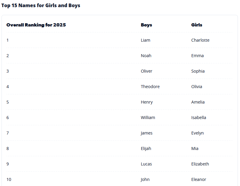 There are a bunch of babies named Elanor and Oliver like it's 1926. Grim.