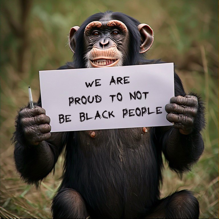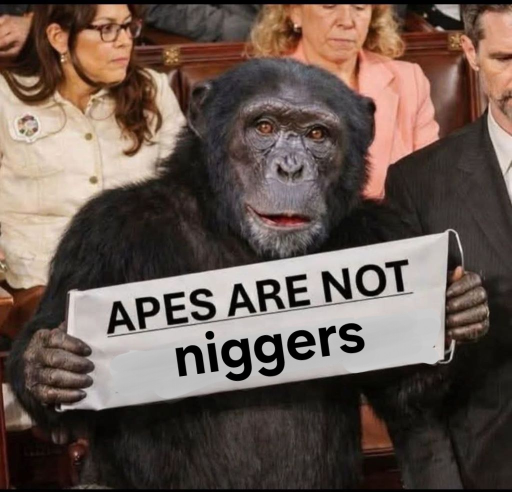 >>529241835Funny thing about all of this is that humans are classified as Great Apes, along with chimps, bonobos, orangutans, and gorillas.Also, the video that negroid is whining about portayed the Obamas as monkeys, which are not classified as apes.So we have all kinds of stupid wrongness going on here.And the funniest part is that he's basically holding up a sign that says that niggers aren't human.