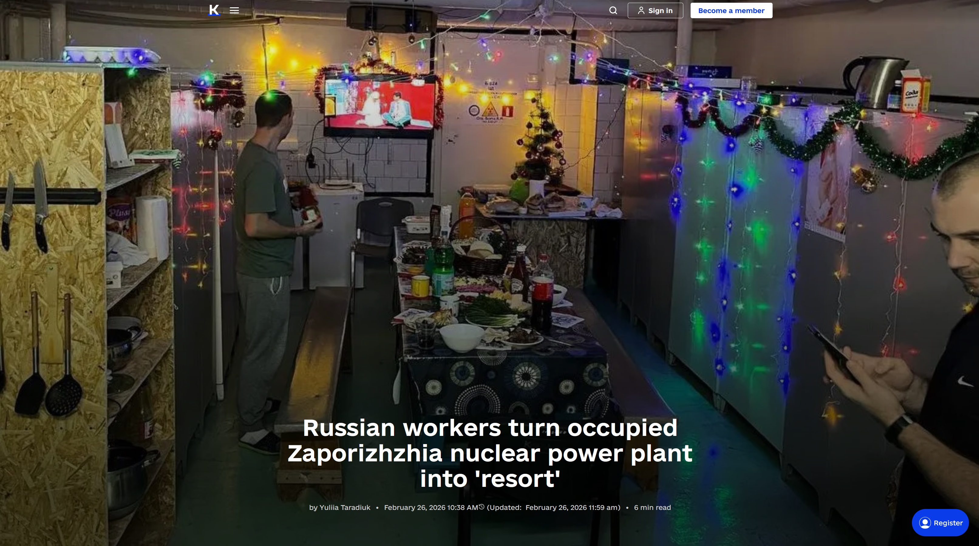 >Russian workers turn occupied Zaporizhzhia nuclear power plant into 'resort'>Russian workers brought in to operate the Zaporizhzhia nuclear power plant after it was seized in March 2022 have converted work areas into makeshift living quarters, which a former acting chief engineer said appears to violate plant safety rules and create a fire risk. Rosatom, the Russian nuclear giant, became the plant's operator after the occupation.>Photos posted on Jan. 20 by Actual Energodar, a Telegram channel that publishes updates about Enerhodar and the occupied plant based in the city, show Rosatom workers using a plant room as a living space, with a kitchen setup and a festive table.>The channel's administrators, who spoke to the Kyiv Independent on condition of anonymity, said the images circulated before New Year. They added that Russian workers spend almost all their time within the power plant's facilities.
