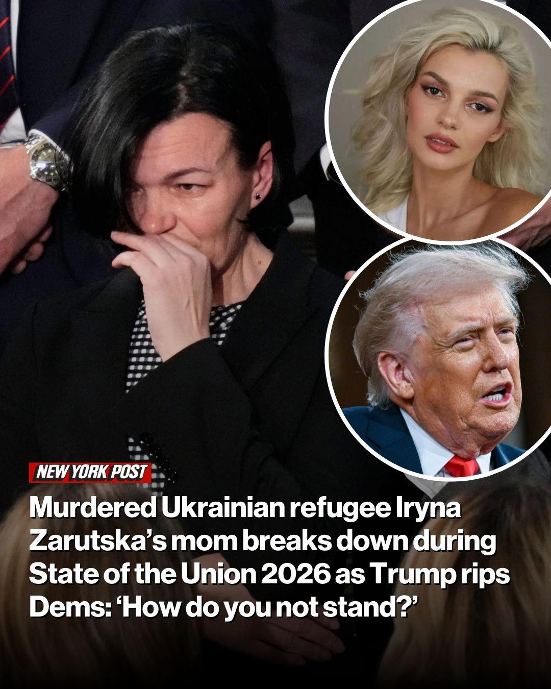 >Murdered Ukrainian refugee Iryna Zarutska’s mom breaks down during State of the Union 2026 as Trump rips Dems: ‘How do you not stand?’