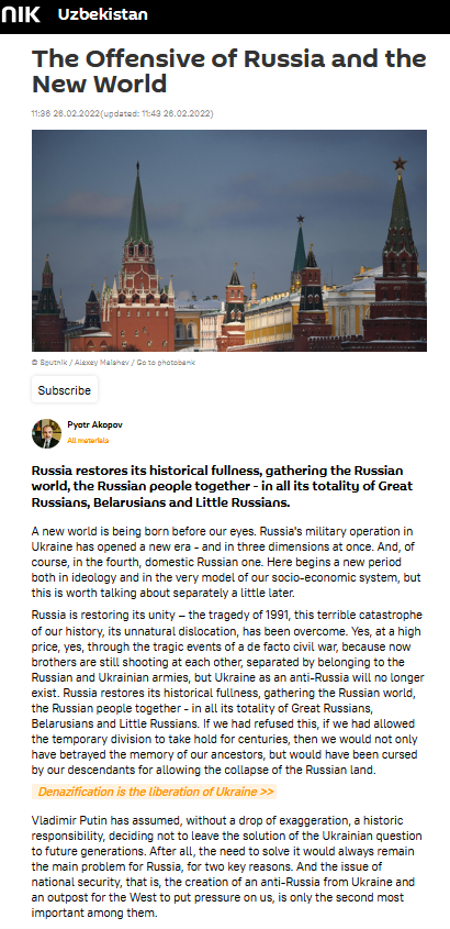 REMINDER: 4 years ago the subhumans prematurely gloated about their victory in Ukraine. Accidentally publishing articles about their success in Ukraine and their seizure of Kyiv.https://uz.sputniknews.ru/20220226/nastuplenie-rossii-i-novogo-mira-22994815.html