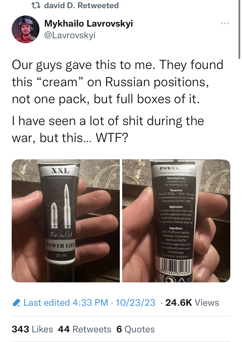 >>529257416I think russian logic is that sex has to cause pain to the other side, if you want to give pleasure it means you're gay regardless of the gender. sounds like something a pack of wild dogs would come up with but I guess such are the mysteries of the russian soul.