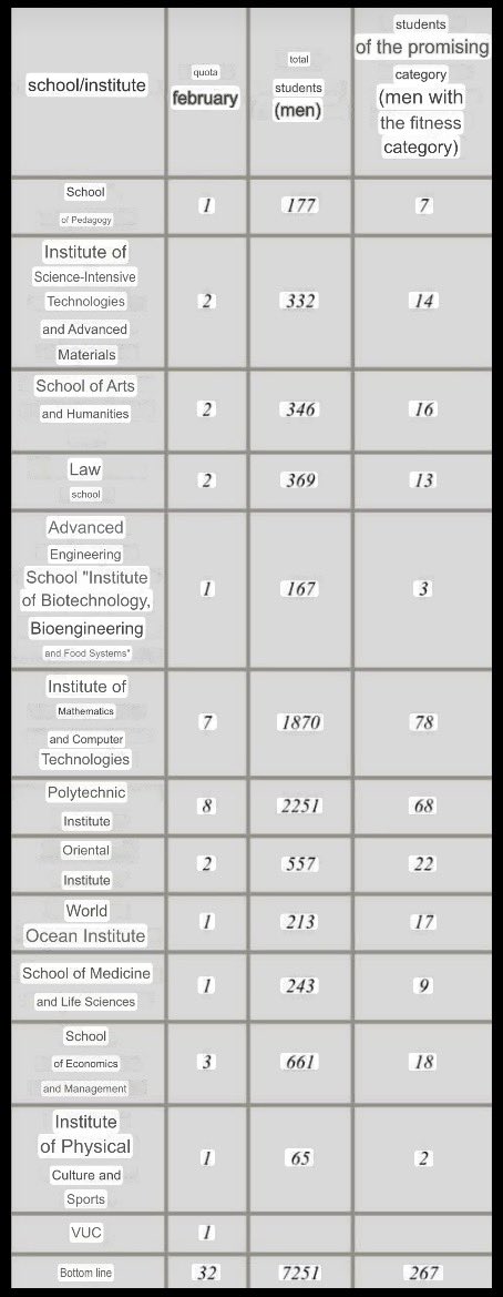 >>529264303>Also a question, when will we see zigglets on the battlefield?The rectorate of the Far Eastern Federal University (FEFU) in Vladivostok has introduced a quota for sending students to the "SVO" - 32 people for February. This was reported by the former adviser to the university rector and public figure, Marina Barinova.