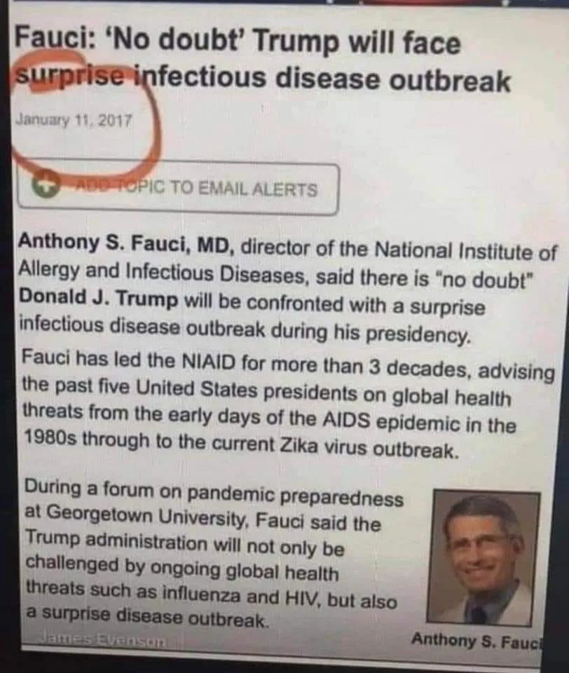But i thought we all said it was from Fauci?