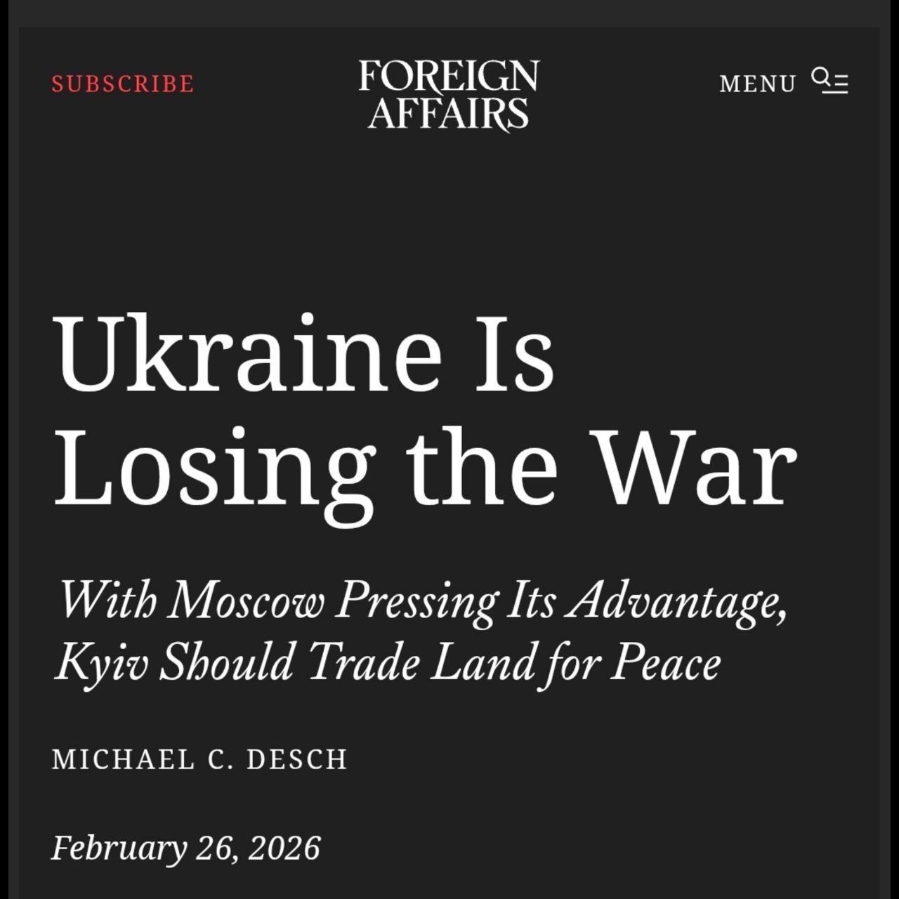 >>529292157Michael C. Desch aka Ivan Putinov, 5 star journalist from Moscow. More garbage Russian propaganda. If Russia was winning, they wouldn't have had 1.5 million KIA