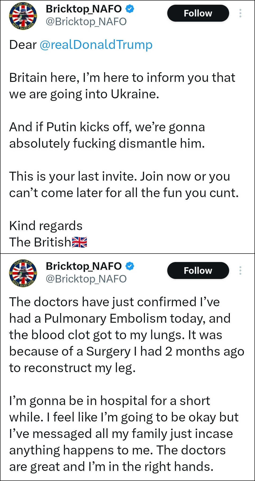 >British gonna beat putin lil bro