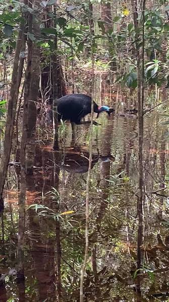 Told me a gigantic hanger (separated tree limb that was water logged and hanging in the canopy) fell 2 feet from him. It was huge and could’ve killed him. He saw lots of ants and shit too.
