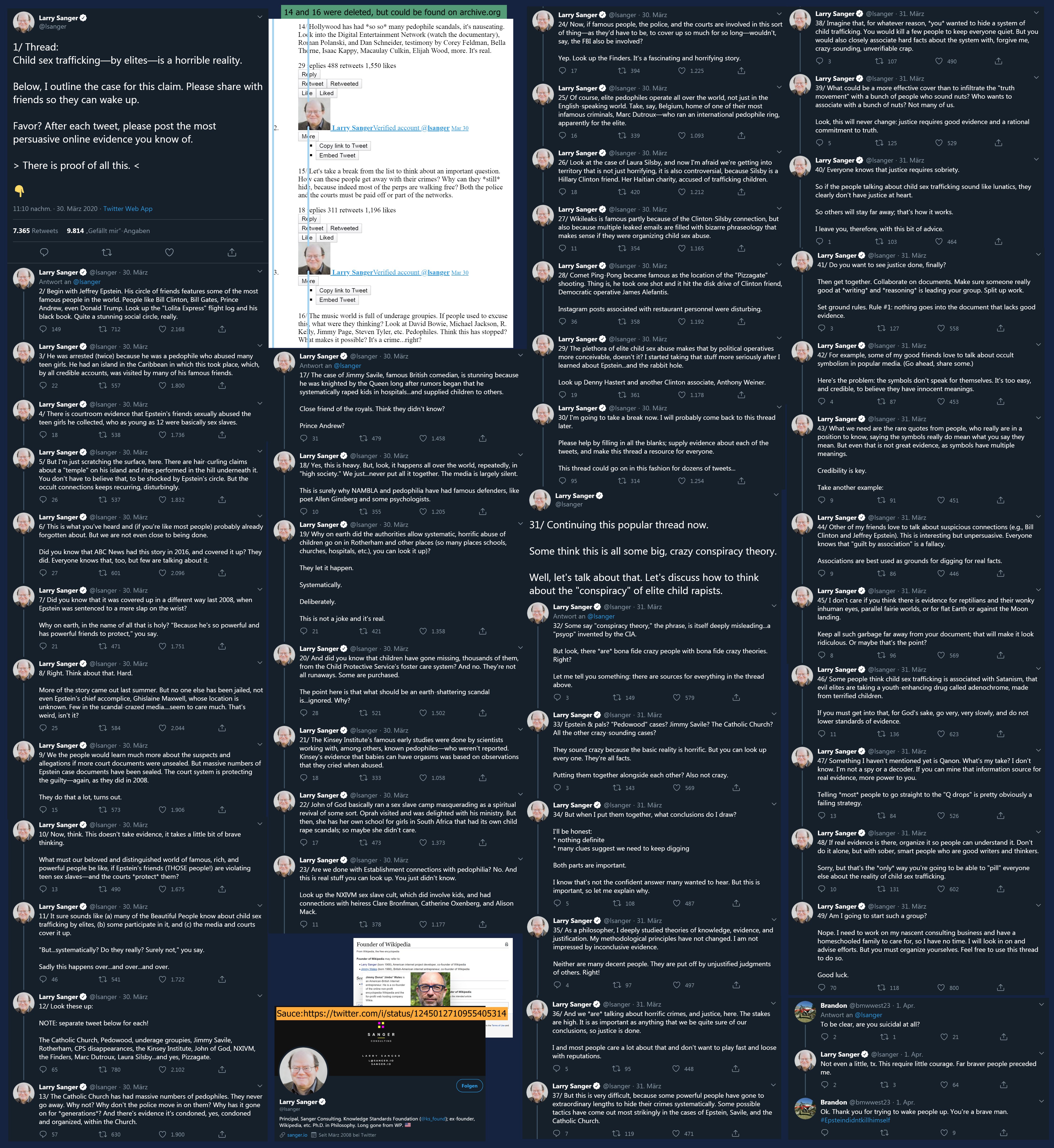 Here's wikipedia cofounder Larry Sanger's tweet thread from a few years ago on the reality child sex trafficking.