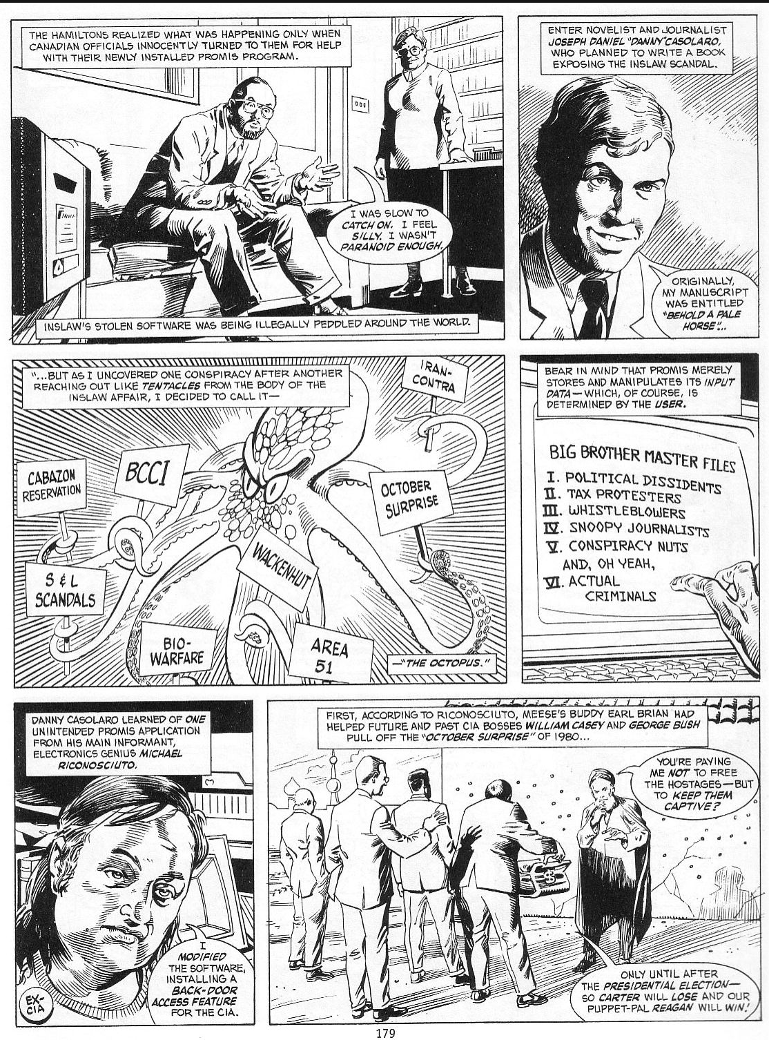 Looking for a good solution for maintaining an ongoing updateable shared collection of memes/caps, something simple to at least collect and distribute bonganon's post summaries and what we can scrape from the threads so far, if anyone has suggestions. mega, a torrent, imgpile...>>529300685Thanks for everything you've been doing.>>529300597The comic format is great. Is there a source?In the same Cheri Seymour interview clipped above, she mentions that Casolaro told loved ones he was headed to "bring home the head of the octopus" on his last trip. She is confident that he was influenced by having read Dan Moldea's book in which he refers to the DOJ as the octopus, and that Casolaro referred to the DOJ as the head of it.