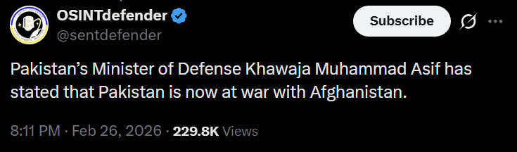 Pakistan says they are officially at war now.