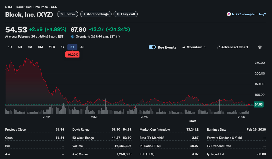 >>529301363zoom out, Square/Block stock peaked at $273 in Feb 2021 and went down to $50, muh AI kek