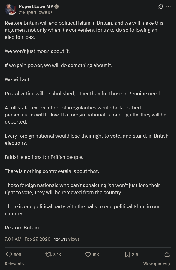 >Matt Goodwin declares: 'Reform UK REJECTS sectarian politics' as he breaks silence on by-election defeatHe says as he's just been defeated by sectarian politics. Maybe if he spent more time at halal kebab shops and photoshoots with Based bro-tier Sikhs he could've won.