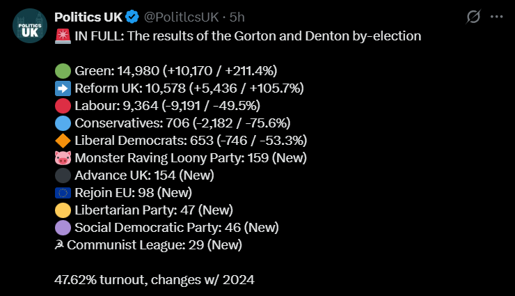 >>529306461Greens whore won the by-election in Gorton & Denton