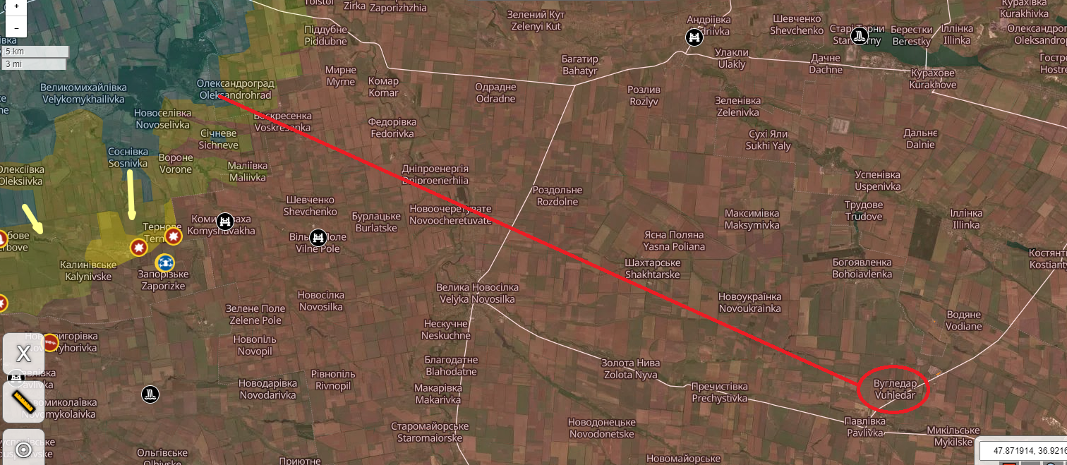 >>529313107Huliapole axis update:Ukrainian forces entered Berezove from the eastern side, while the center and western parts remain contested. It is assumed that Russian presence there has disappeared.Ukrainian forces were also spotted about 4.5 km south of Verbove. Reports indicate movement toward Krasnohirske, on the opposite side of the Yanchur River near Zlahoda. Further west, the settlements of Yehorivka and Pryvillia are high likely under Ukrainian control, but this lacks confirmation.https://x.com/NOELreports/status/2027320161846304982?s=20>3h