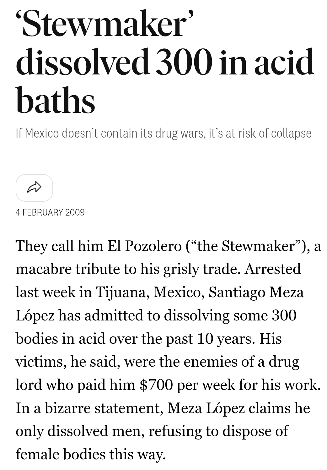 >>529316852B-but muh rules based international order. Can you imagine what would happen if the govt actually partnered with face skinning cartels? Maybe have el pozolero visit no 10...