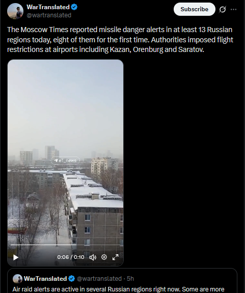 >A missile alert was declared for the first time in the Sverdlovsk region