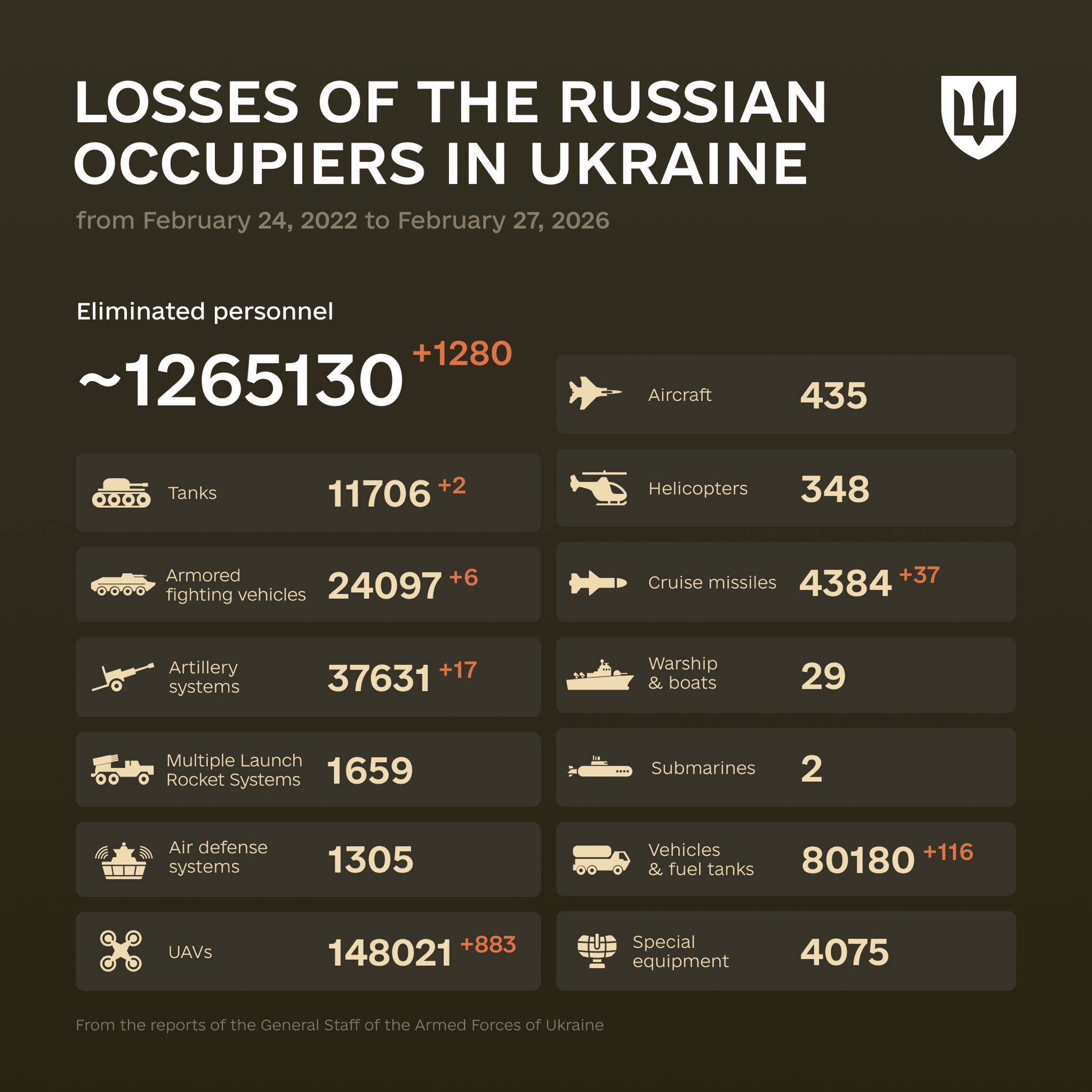 >CSIS: RU casualties at ~1.2 mil with 325,000 dead or missing (>200k named & verified by Mediazona), UA at roughly half that number