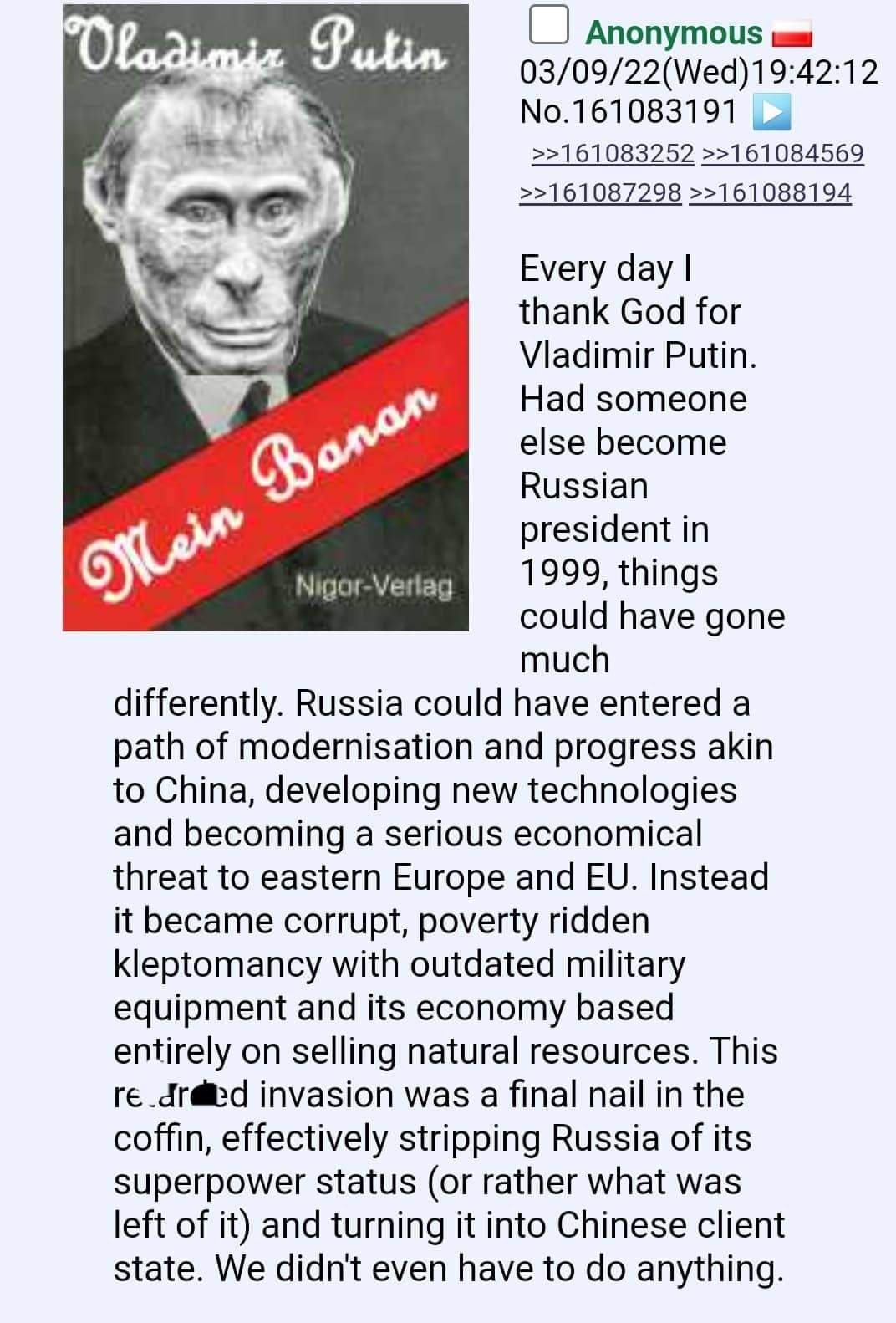 I think the biggest issue is they are mad we are leftist faggots on /pol/. We should really return to where we came from, /k/eddit and redd!t. I can sense most people see through our fake right wing bullshit. Ukraine is purely a left wing cause. I mean we had a tranny spokesthing and loved it. Im done being a tourist here