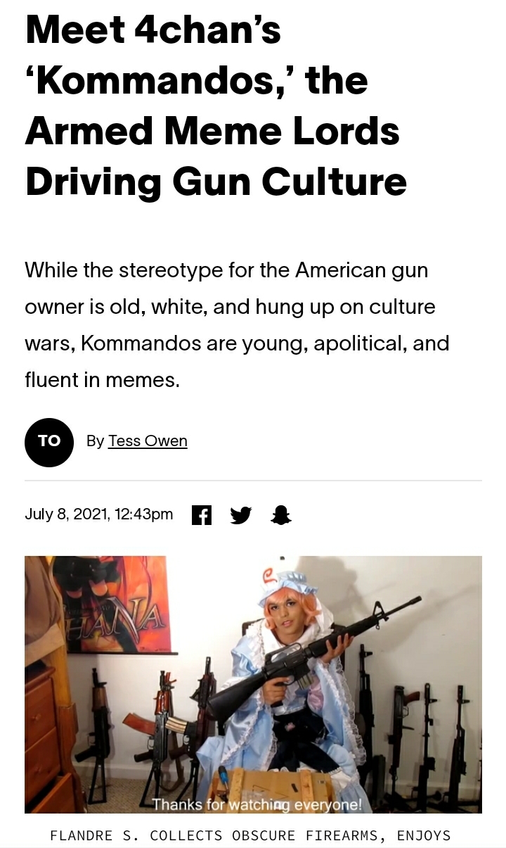 >>529337499/k/ is literally 50% discord troons and 50% "libertarian" reddit tourists from 2016+. you will unironically get banned faster on /k/ for wrongthink than on reddit. it's even full of euros who can't even own guns. kek