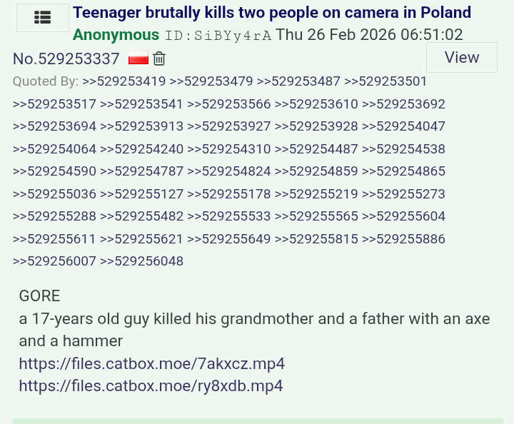 >>529336177I'm never letting morbid curiosity win again. I only watched a few seconds and I feel sick. I want to go give my grandma a hug.