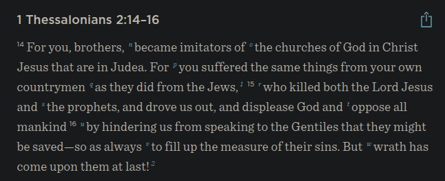 >>529354572Wrong.I'll fetch the verse. Remember what the Bible said about the jews, what they did that was abominable?