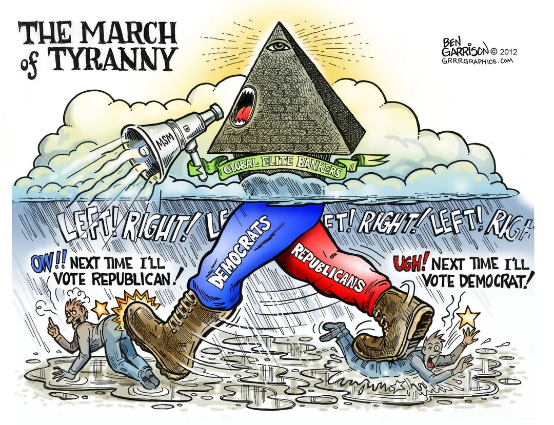 There is no left and right. It's the same coin with two sides. They're both super rich on both 'sides'. This is the blanket that has been pulled over your eyes to cover the truth. Politicians are just actors between you and the Big Money. Look at the top of this image, they're there and you're divided on the bottom to benefit the people on top.