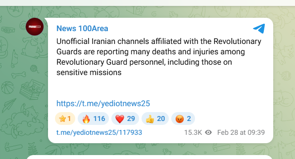 >Unconfirmed reports from Iran: Thousands of IRGC members killed and wounded in strikes; initial signs that Iranian regime is struggling to function
