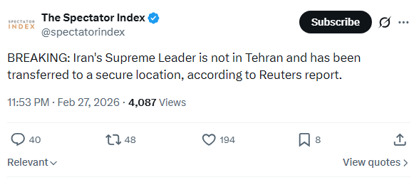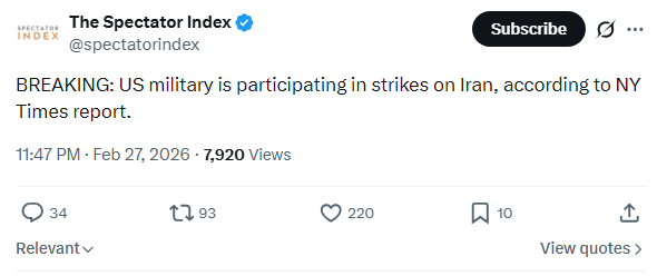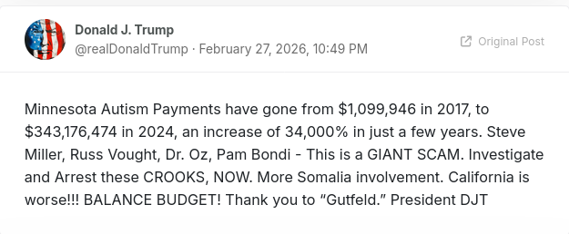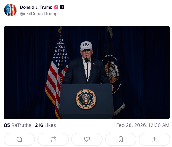 TRUMP STATEMENT ON TWITTER SINCE TRUTH IS DOWNhttps://x.com/AZ_Intel_/status/2027649001772732768