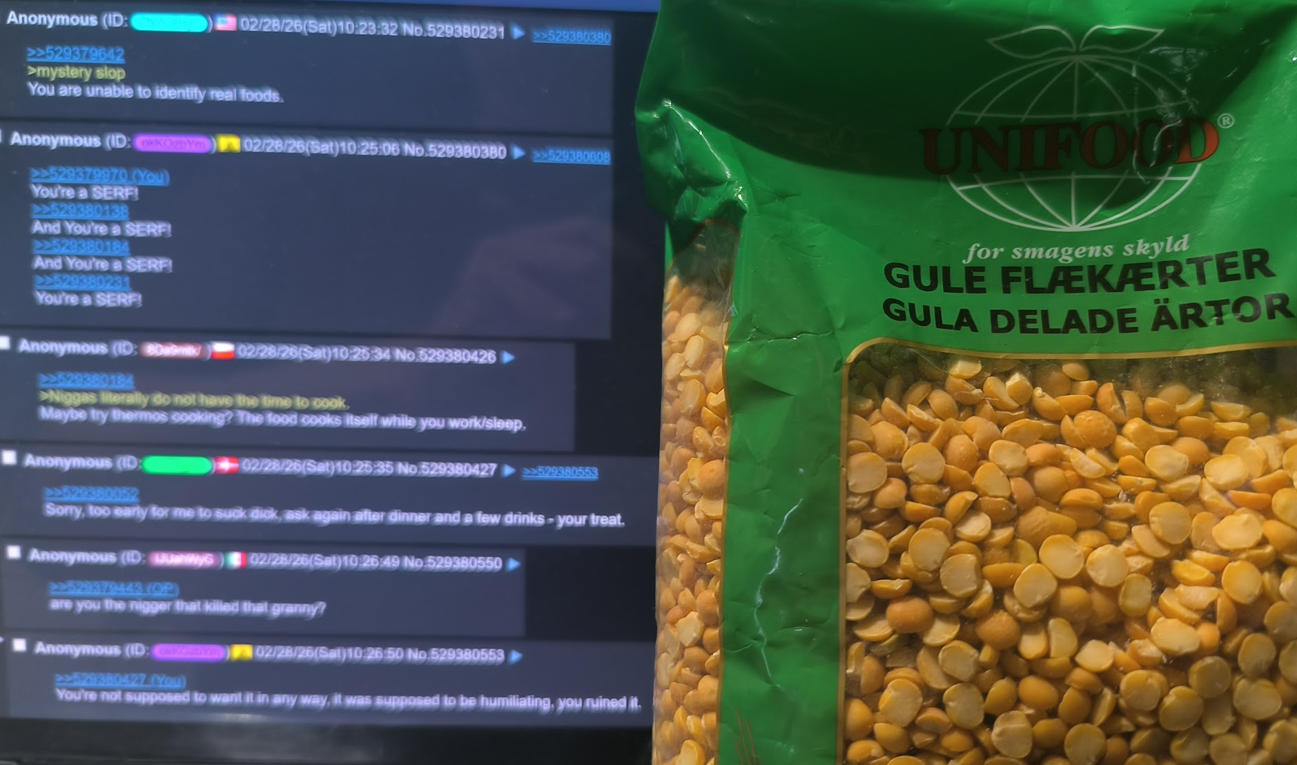 >>529380553Stick at calling me a serf then.Oh wait, that isn't going to work either.I LIKE Gule Ærter. I put some more effort in cooking them than OP, but same stuff. High protein, YEARS of shelf life - so if that makes me a serf, don't really care, have to ruin that one too.But hey, you can always try another "humiliating" insult my good memeflag