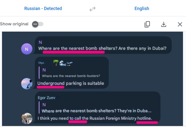 Russian expats at Dubai getting shelled, good