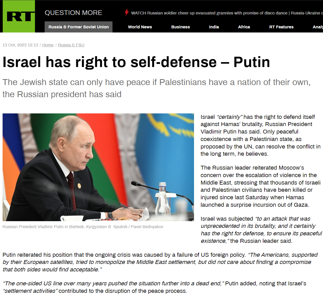 Yeah, sorry>The head of Russian diplomacy, Sergei Lavrov, denounced on Saturday the strikes on Iran during a phone call with his Iranian counterpart Abbas Araghchi and organized at the request of Tehran, indicated Moscow.In his appeal, Lavrov "condemned the unprovoked military attack by the US and Israel against Iran as a violation of principles and norms of international law," Russian diplomacy said in a statement. The Iranian side expressed sincere appreciation for the continued and strong support provided by the Russian Federation," it added.