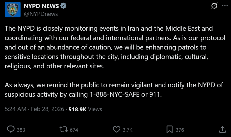 >have to prepare for blowback in the largest city in America