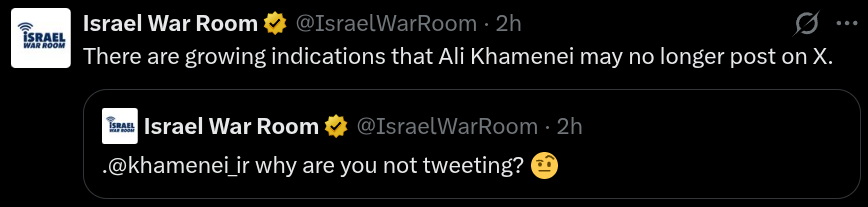 At this point it has become clear that the Iranian leadership is so incompetent that killing them does absolutely nothing, if anything it probably slightly improves the performance of their military. Queso Salami was apparently the only one in the regime with an IQ above room temperature