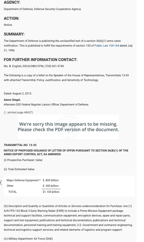 >>529415490Nice cope. They have no defense against US air craft. They are going to do whatever they want over Iran. And, by the way, that radar was bought by qatar in 2013. It was their loss. All iran will do in all of this will be hit some empty air fields.
