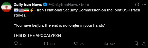 >He described a “good call” with Netanyahu, saying “we’re on the same wavelength,” and added he has multiple exit options — either prolong the campaign and “take control of everything” or end it within days and warn Iran against rebuilding, noting recovery would take them years.This retarded orange faggot thinks he can just walk away from this after a few days.