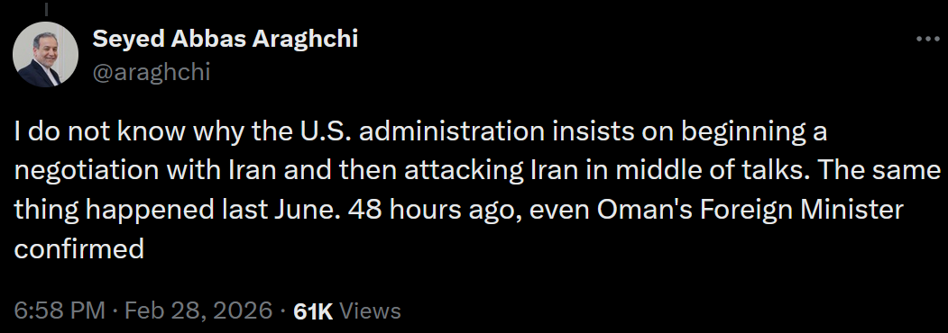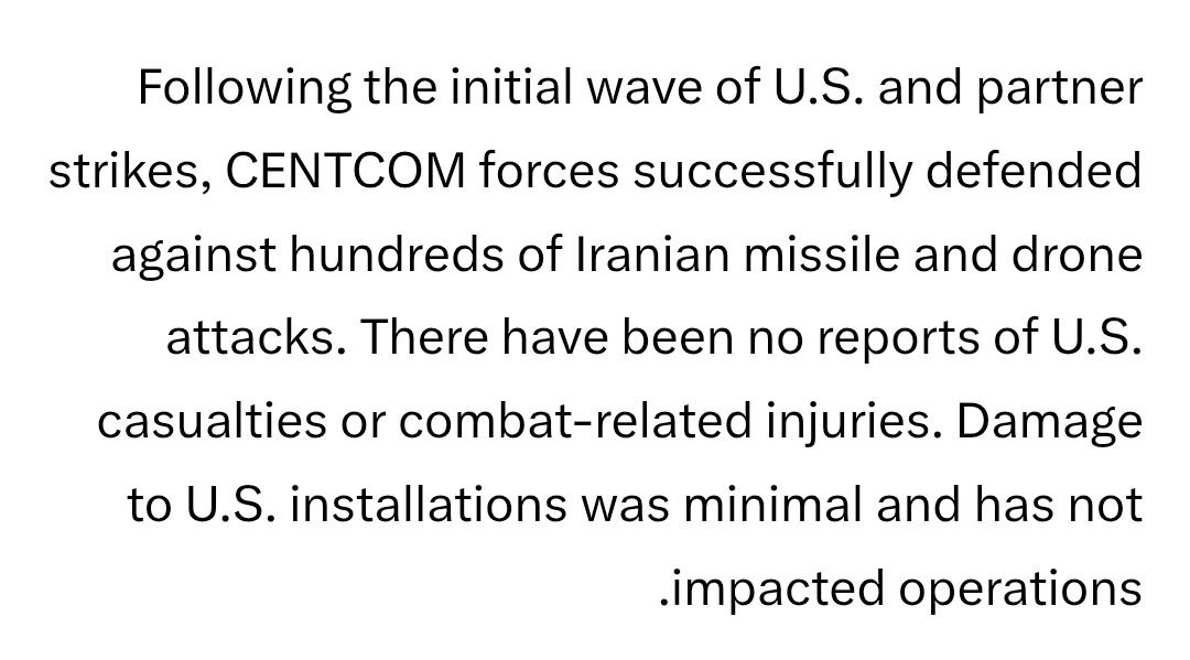 Strikes on Iran appear wildly successful so far, eliminating shitloads of launchers and missile city entrances. Retaliation appears sporadic, minimal and damage largely from interception debris. USAF haven't started yet opening Hormuz but that will come too.