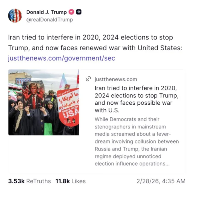 >Trump declares regime change operation dubbed "Operation Epic Fury"