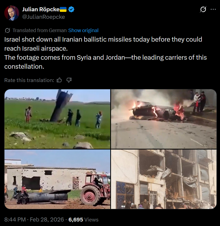 >It has gone quiet, no new reports of airstrikes in Iran or on Gulf states/Israel for the last half hour.